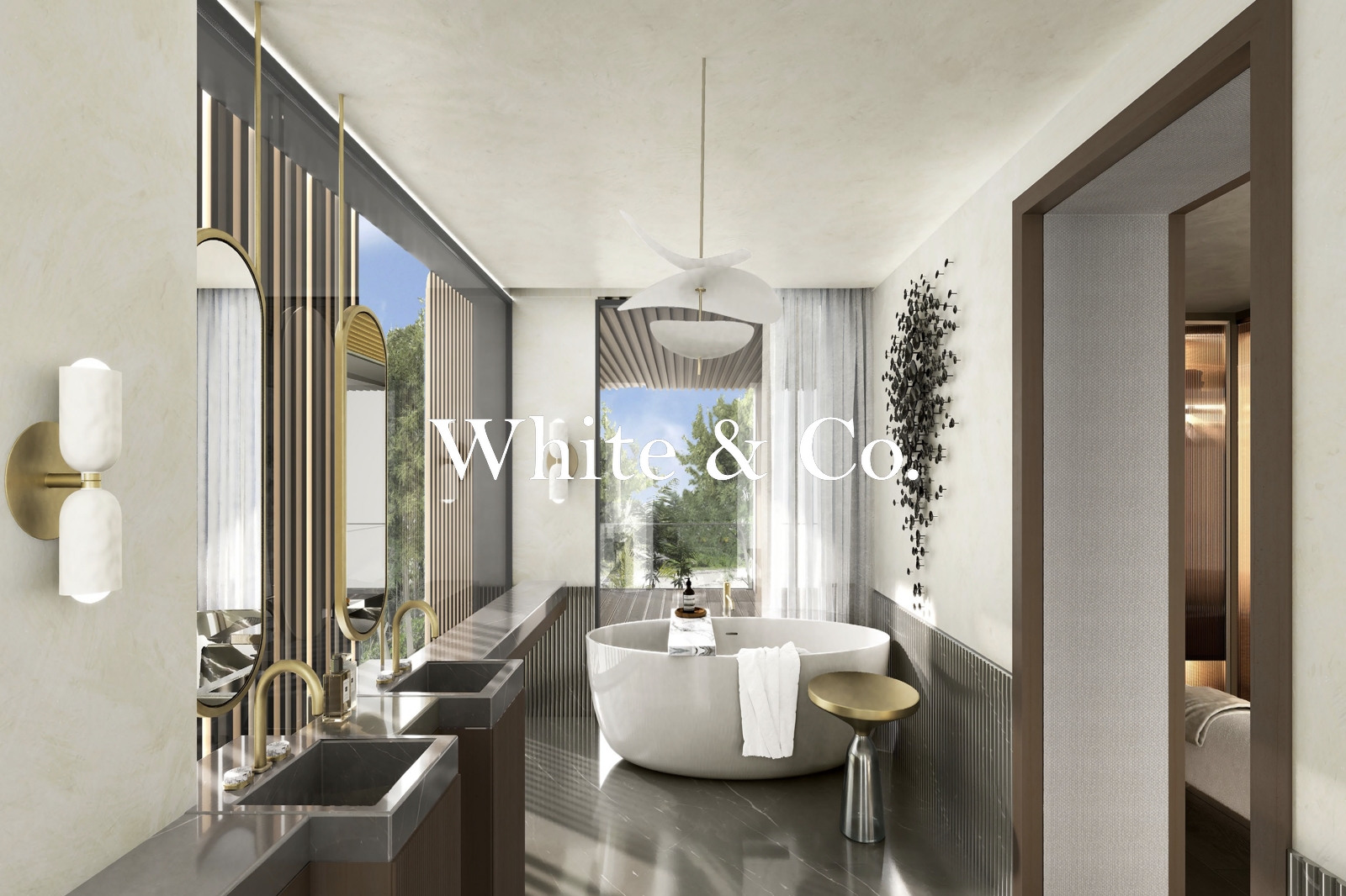 Additional spacious family lounge, opulent master suite with en-suite bathroom and his-&-hers wardrobes, three further en-suite master bedrooms, nanny’s room, and a peaceful outdoor seating retreat.