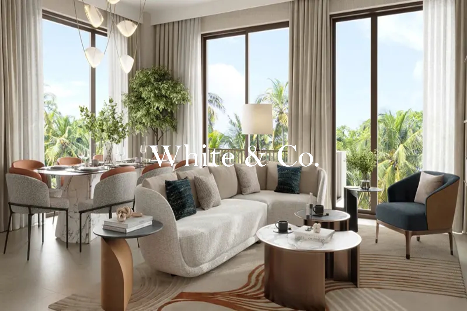 Open-plan living, dining & kitchen.